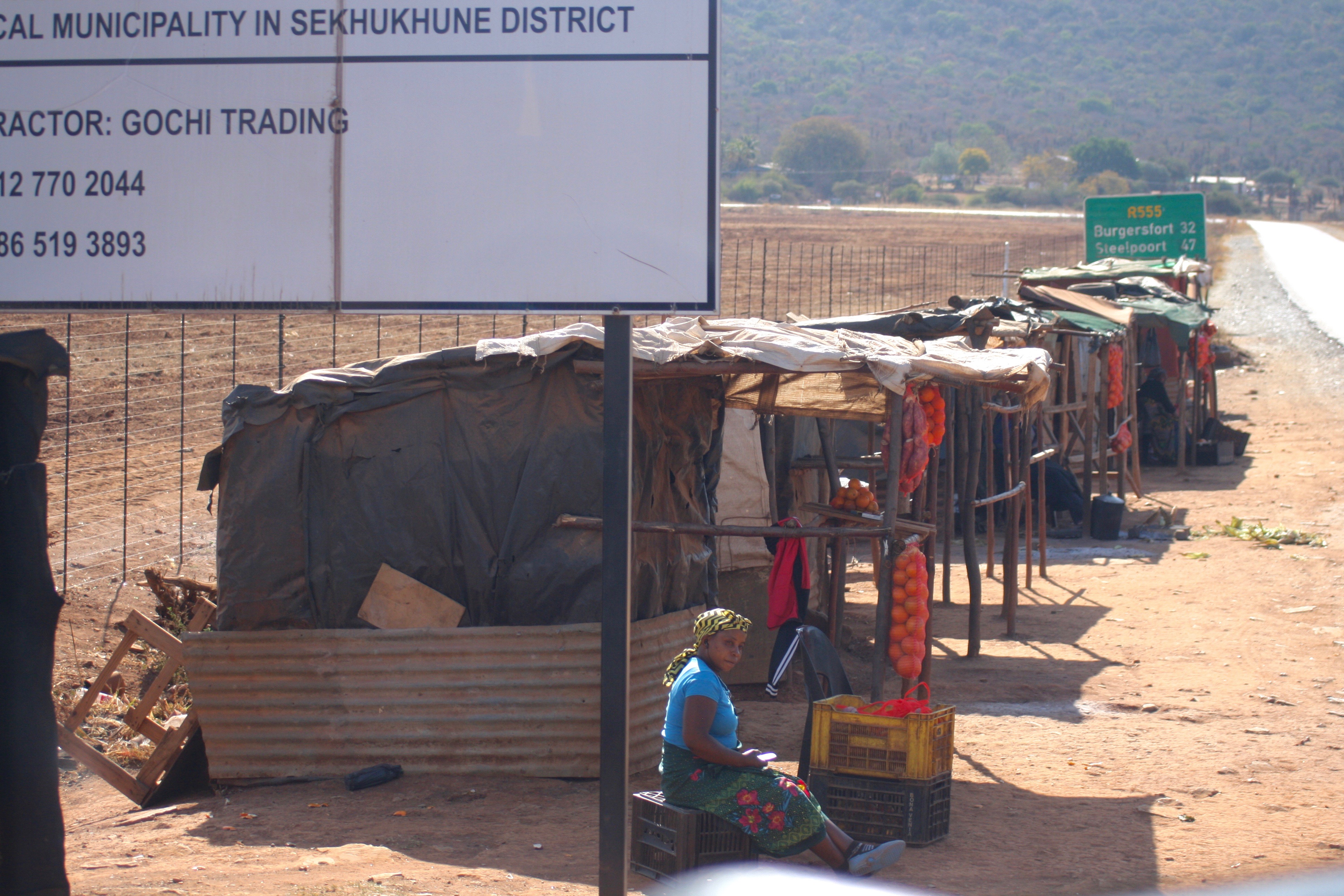 stof. De toestand werd alsmaar erger. Zie je die acacia’s?
